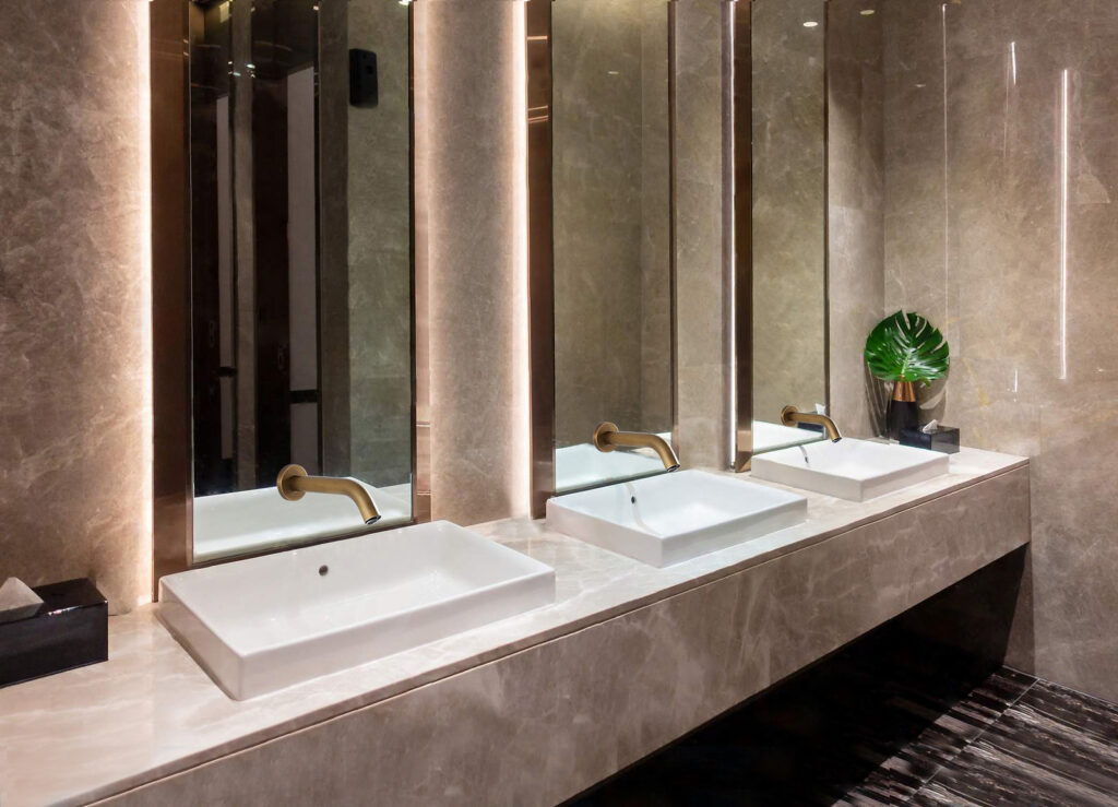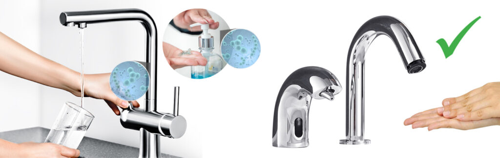 Public Restroom Design! Touchless faucets and Soap Dispensers are the perfect choice for any commercial restroom. First thing that comes to mind when using them is hygienic since no need to ouch handles to open with dirty hands and retouch to close. During the COVID pandemic the need for avoiding bacteria contamination and or cross contamination has never been more important topic. That’s why you will find more and more sensor motion activated bathroom fixtures common in most hospitals and public bathrooms.