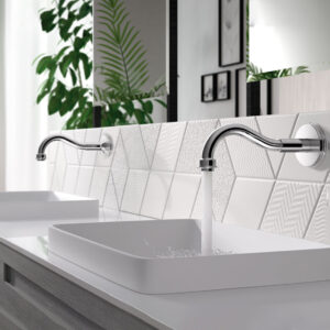 Wall-mounted faucets from BathSelect are a sleek and space-saving choice for hospitality bathrooms. These faucets provide a clean and modern look, and their wall-mounted design makes cleaning around the sink area more convenient.
