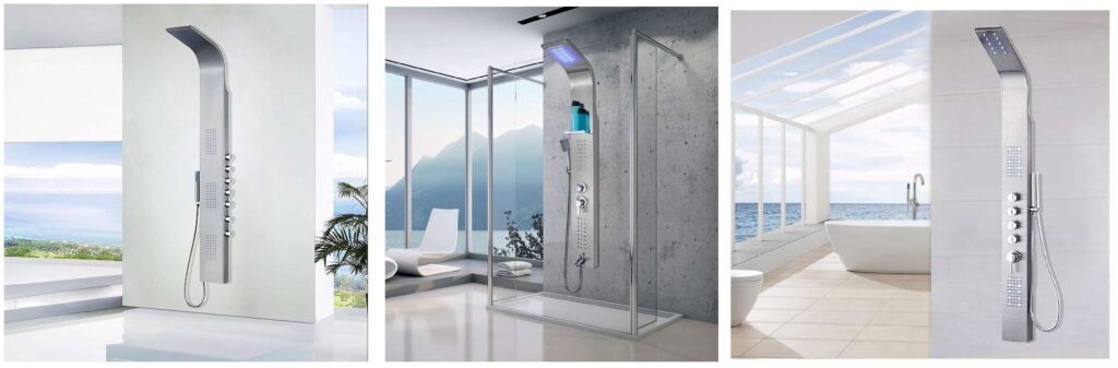 JunoShowers High-Pressure Shower Panel System: Offers a full shower with high-pressure jets.