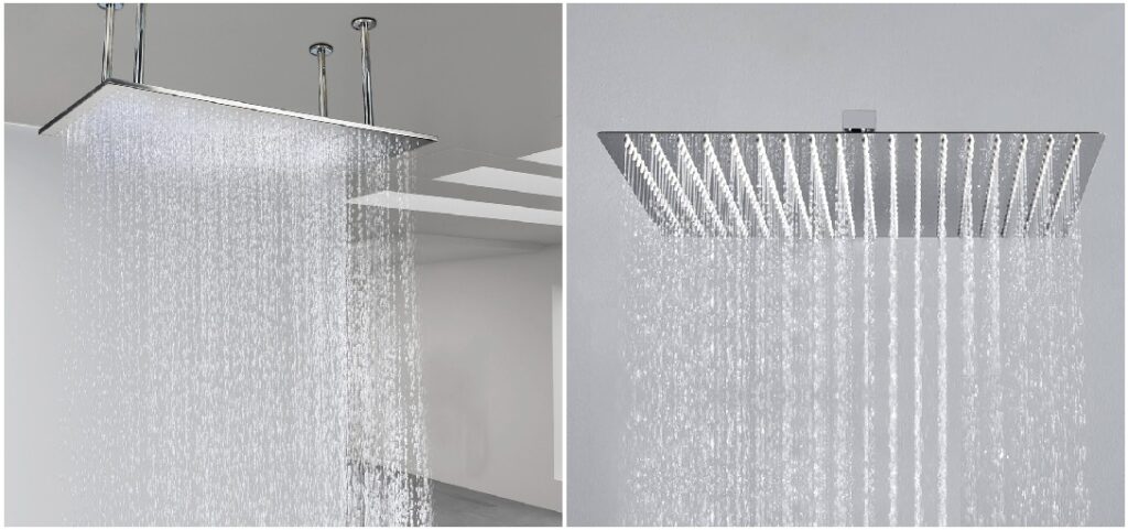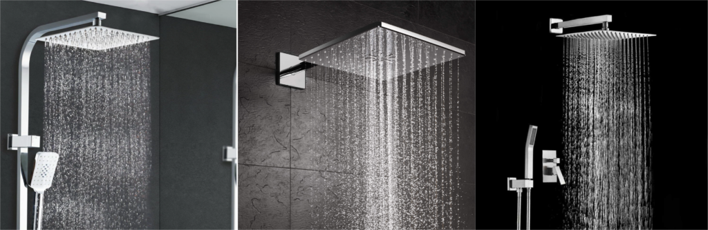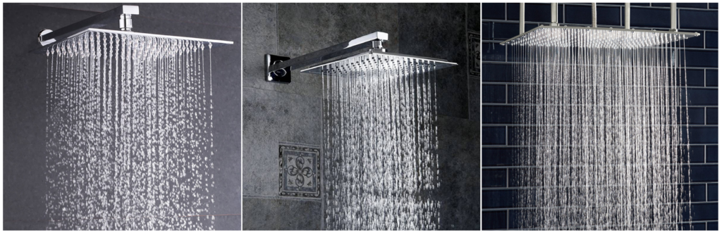 No longer the typical small showerhead that pushes forceful stream of water onto a specific small area of your head or your body during a shower, the rain shower heads are different they are oversized and usewater pressure and gravity to release water on larger area of you head and body hence creating the ultimate SPA relaxing feel of a rain shower in your own shower something that you deserve.