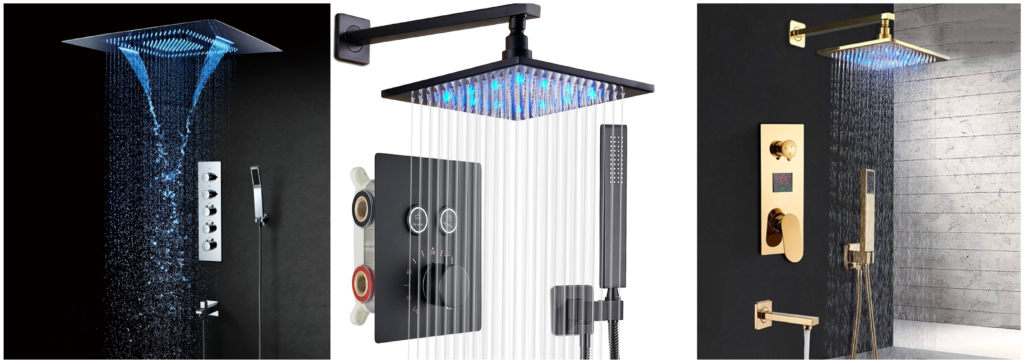 This gives a very luxurious outlook to your bathroom. As the name suggests, it comes with both the ceiling shower head as well as the handheld shower head. This dual combination makes it easy for the consumer to choose the shower head according to his liking and preference.