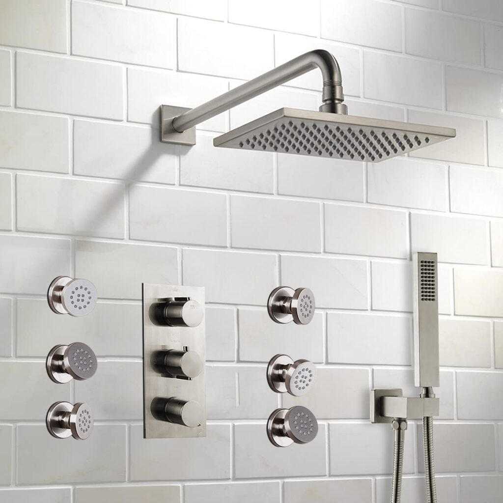 Shower sets with multiple shower heads provide a more comprehensive and customizable showering experience. They allow you to enjoy different spray patterns, water outlets, and control options for a spa-like shower experience.