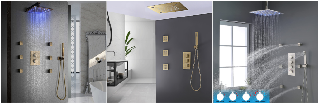 FontanaShowers is renowned for its rainfall shower sets that deliver a soothing and immersive shower experience. These sets typically include a rainfall shower head, shower valve, handheld shower head, and accompanying fixtures.
