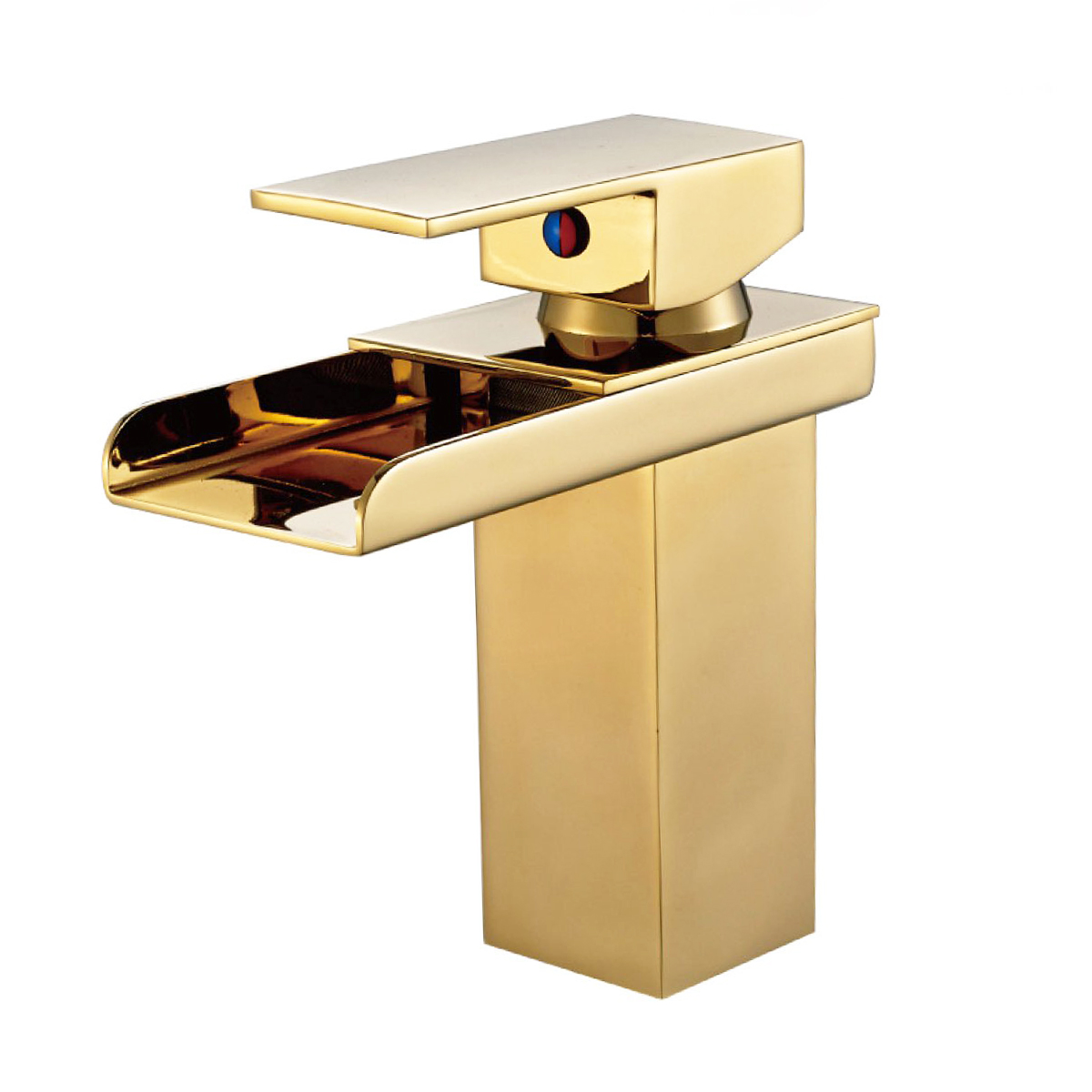 - Gold Finish Waterfall Bathroom Sink Faucet