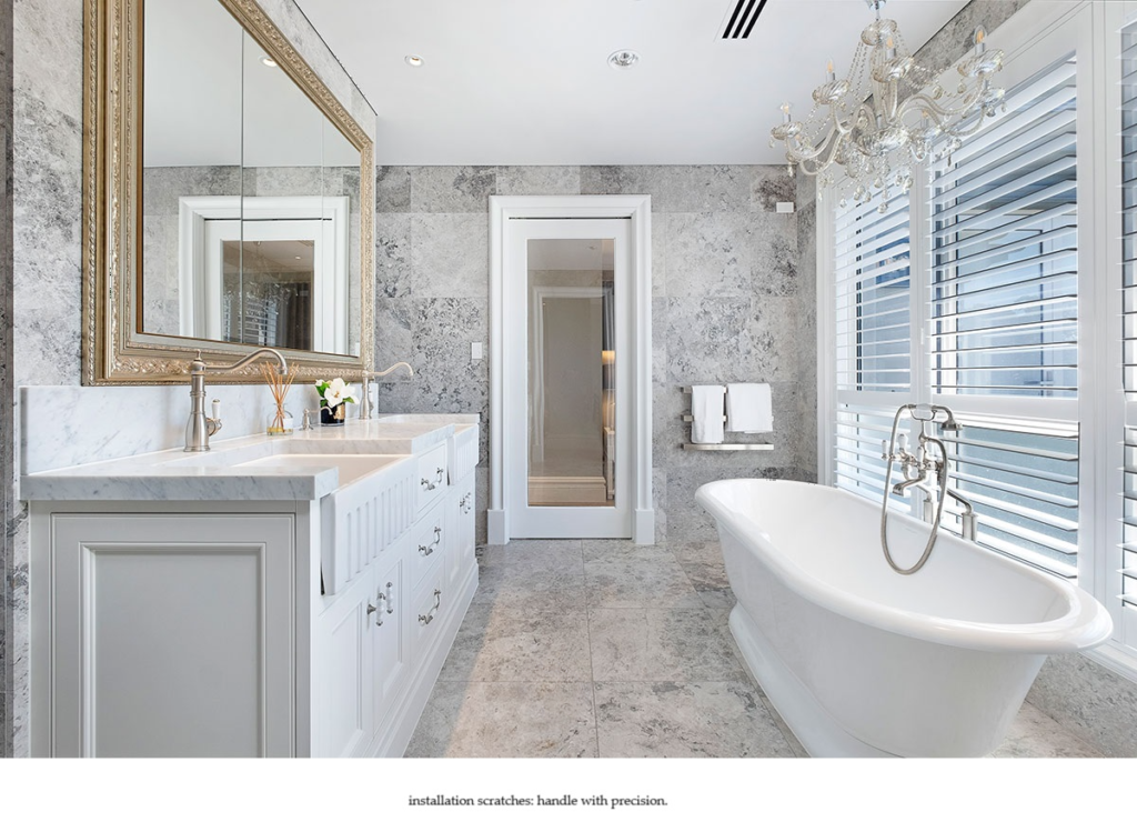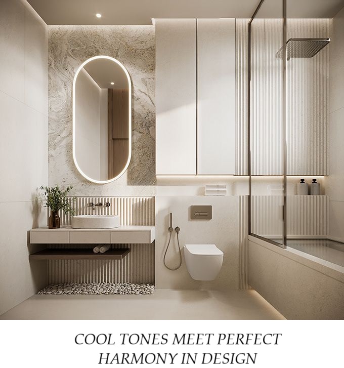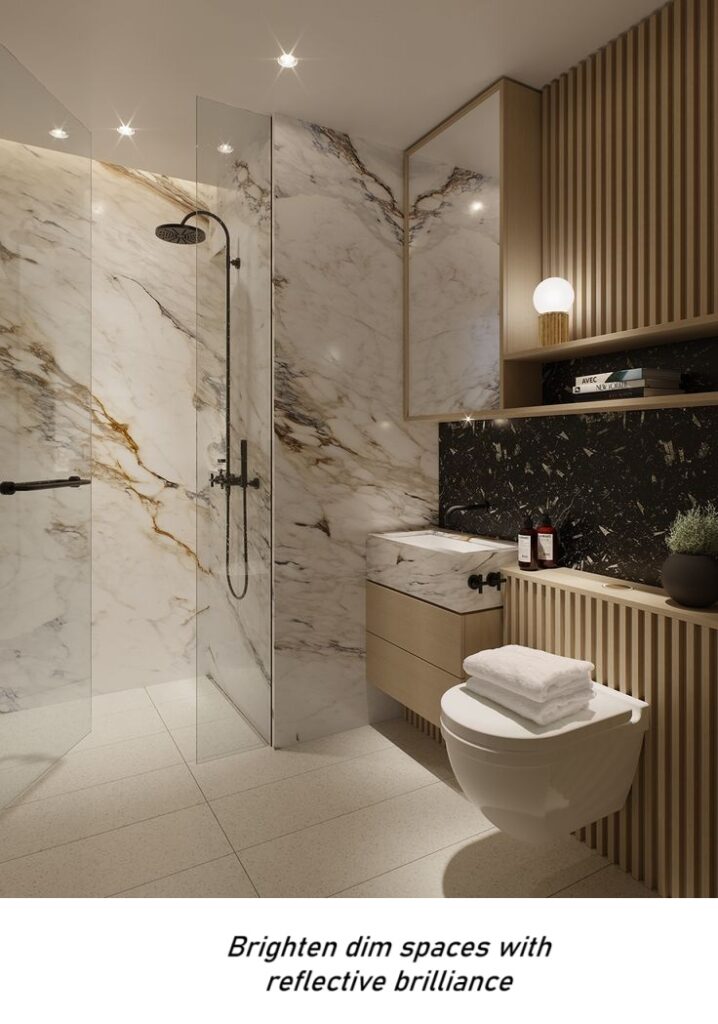 | Visual Appeal | Highly reflective, mirror-like surface with a cool, modern tone. Enhances sleek, minimalist designs. | Muted, matte finish with a warm undertone. Adds softness and sophistication to traditional and transitional bathrooms. |