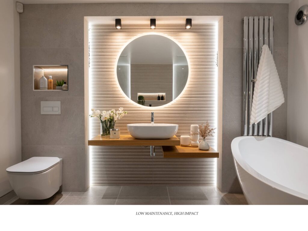 Some bathrooms benefit from visual softness rather than high shine and sharp reflections.