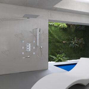 BathSelect Thermostatic Shower Set is specifically designed for hotels and resorts, ensuring a comfortable and consistent shower experience for guests. The set includes a thermostatic shower valve that maintains a stable water temperature, a shower head, and a handheld shower for added convenience and flexibility.