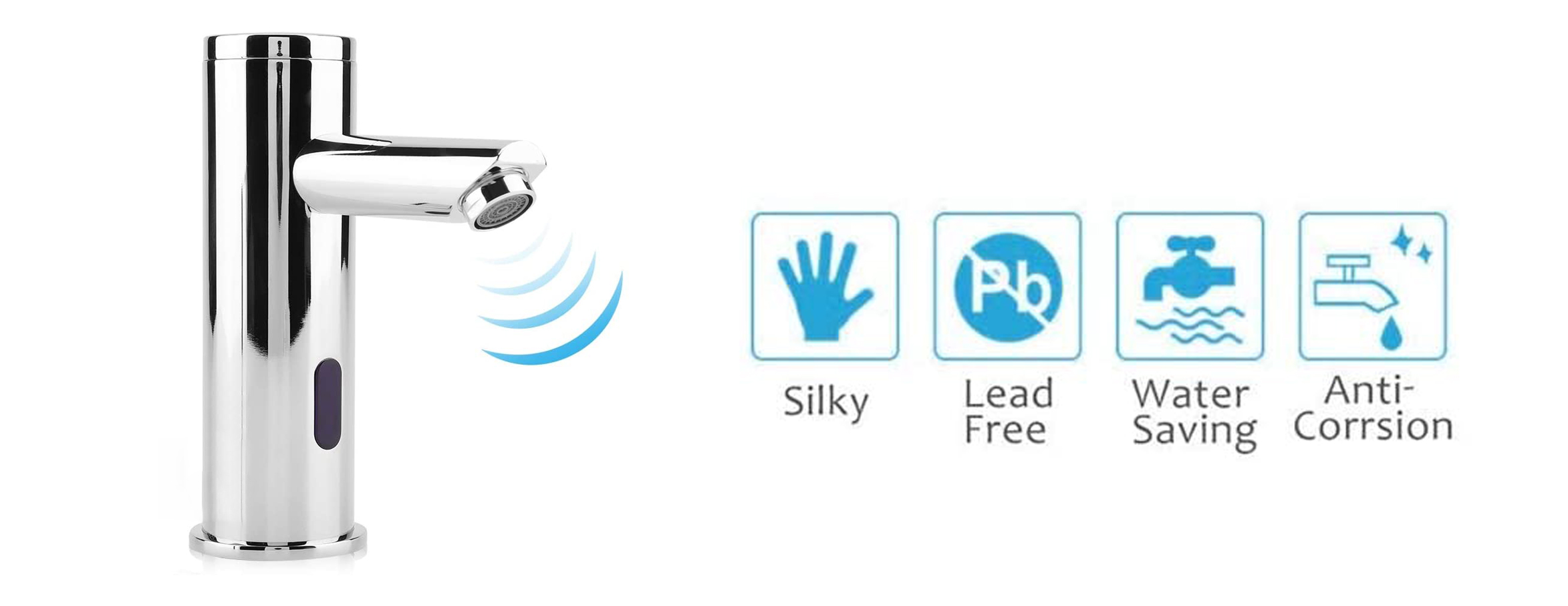 A lot of water is wasted when turning the tap on and off manually. With sensor touchless taps, the tap is activated or deactivated within 0.5 second, and does not drip, a common problem with manual taps.