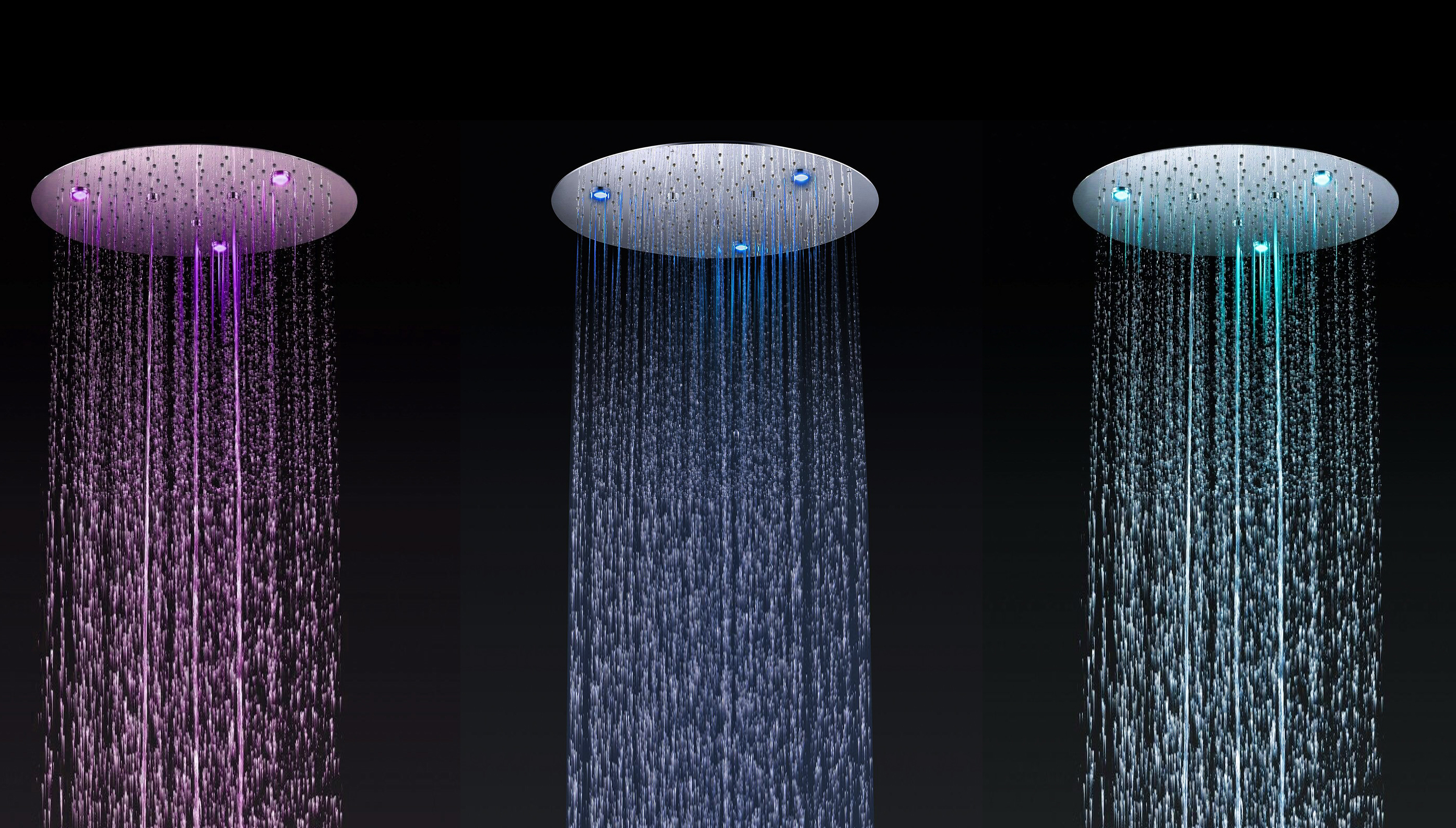 LED shower heads contain small LED lights dotted in between the spray nozzles. But while LED faucets for kitchen and bathroom taps often rely on batteries to power the lights, LED shower heads are almost always hydro powered, which means when the water moves through the shower head itself it illuminates the lights, although the brightness of the lights depends on the intensity of the water, which means the level of light can be adjusted by altering the flow of water. Some LED shower heads may have only one color setting, but the vast majority have more, some are called RGB Shower Head which reflects a rainbow of 7 or 9 colors.