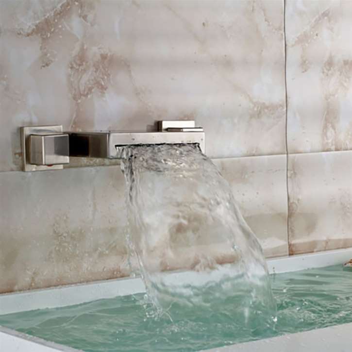Fontana Square Dual Handle Brushed Nickle Finish Wall Mount Waterfall Brass Vessel Bathtub Faucet