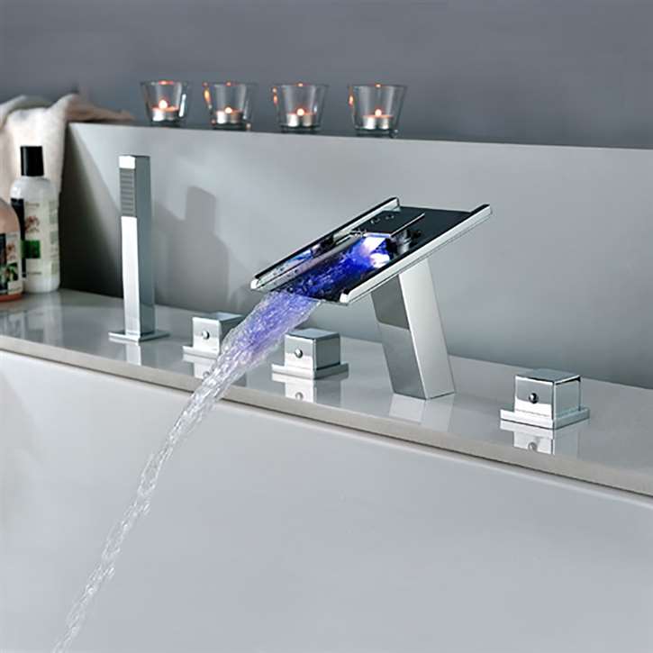 Fontana Waterfall LED Bathtub Faucet with Handheld Shower