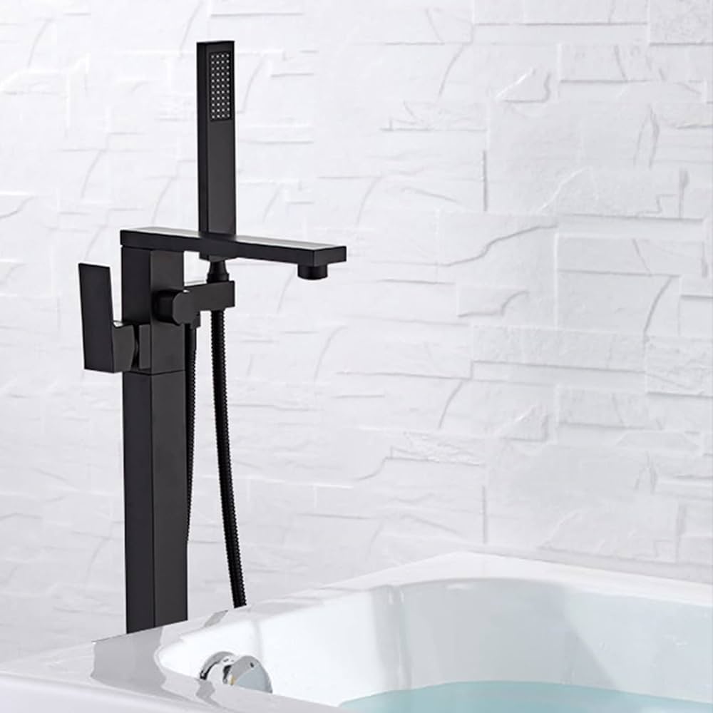 Black Freestanding Floor Mount Bathtub Faucet with Handheld Shower, High Flow Single Handle Mixer Tap for Bathroom or Outdoor Use