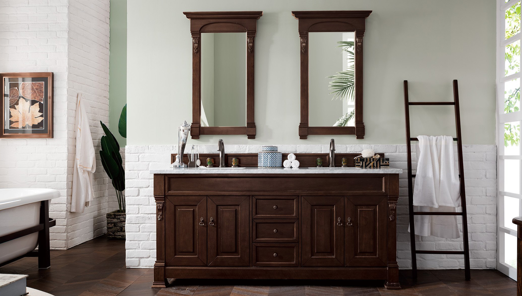 - Attach hose and place swivel connector with handheld shower head on pin